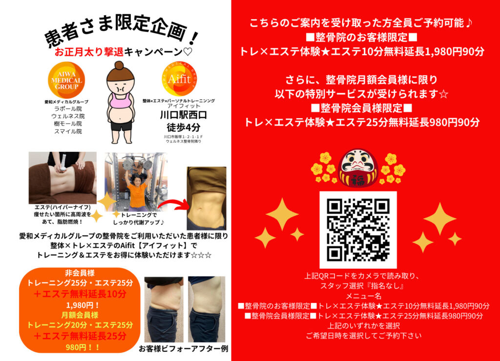 ぜひ、お正月にため込んでしまった脂肪をトレーニングとエステで楽しく燃焼♪しに来てくださいね(^▽^)/♡♡♡